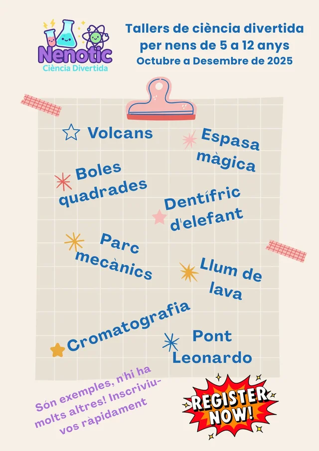 Detalles del producto ✨ Benvinguts al món màgic de la ciència amb Nenotic – Ciència Divertida! A Oferim tallers de ciència divertida per a nens i nenes de 5 a 12 anys a Sitges. 📍 Als locals de CREATIVA, Passeig de Vilafranca, 17 – Oasis local 36, 08870 Sitges 🧪 Experiments sorprenents i educatius: Volcans […]