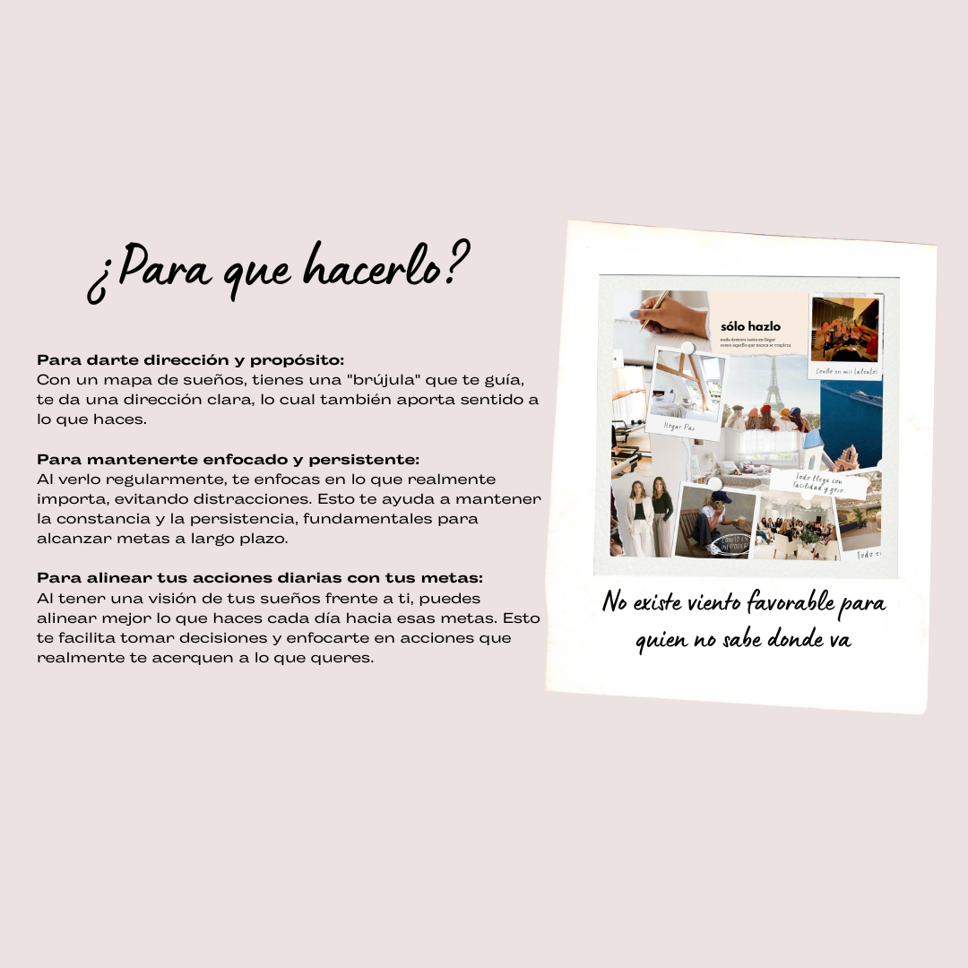 💭 El Mapa de Sueños es una herramienta visual y creativa que te ayuda a ordenar, clarificar y darle valor a tus deseos, conectando con ellos en tu día a día.